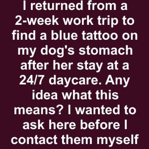 After a two-week work trip, you noticed a blue tattoo on your dog’s stomach after picking her up from a 24/7 daycare. Here’s what it might mean…