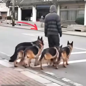 At first, it seemed like he was simply walking his dogs. But after five seconds