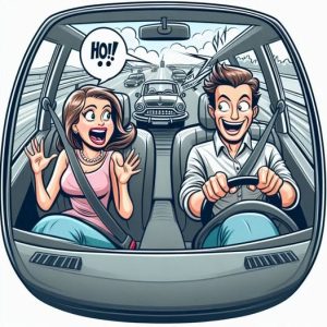 A married couple is driving along a highway doing a steady 40 miles per hour. The husband is behind the wheel. His wife suddenly looks across at…