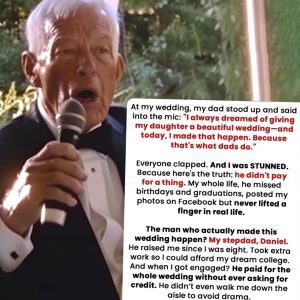 At my wedding, my biological father stood up and claimed he gave me the day of my dreams. I froze in shock. The truth? He hadn’t spent…