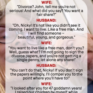 After 47 years of marriage, John told his wife Nicky he wanted a divorce and a “fair share” so he could live like a free man with…