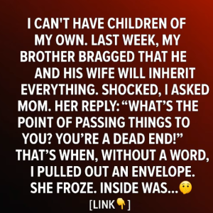 At a recent family dinner, my brother announced that since he had children, he and his wife would inherit everything from our parents. I asked my mother…