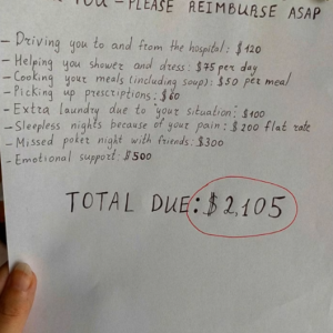 Three days after my surgery, I hoped for kindness from my husband, Daniel. Instead, taped to the fridge was an invoice in his handwriting: charges for driving…