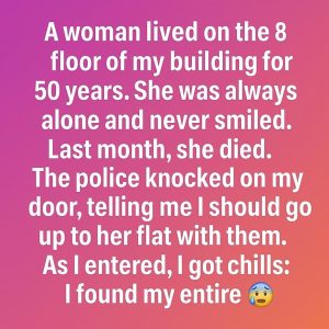For as long as I can remember, a woman lived on the 8th floor of my building. She had been there for fifty years—always alone, quiet, and…